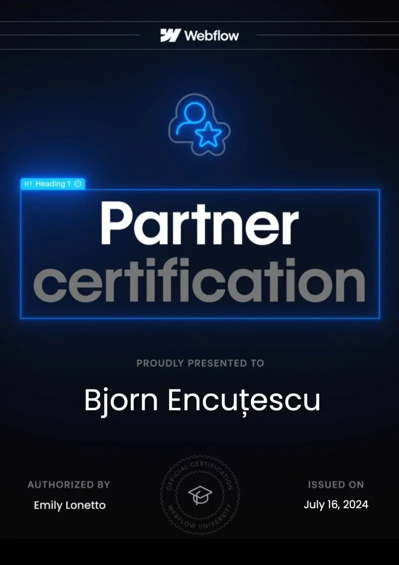 Over time, I worked on larger-scale projects for companies such as Shop Circle and Plus X Innovation, contributing to optimisation and performance improvements. This path eventually led to my recognition as an Official Webflow Partner, collaborating directly with Webflow on new feature releases and educational initiatives.